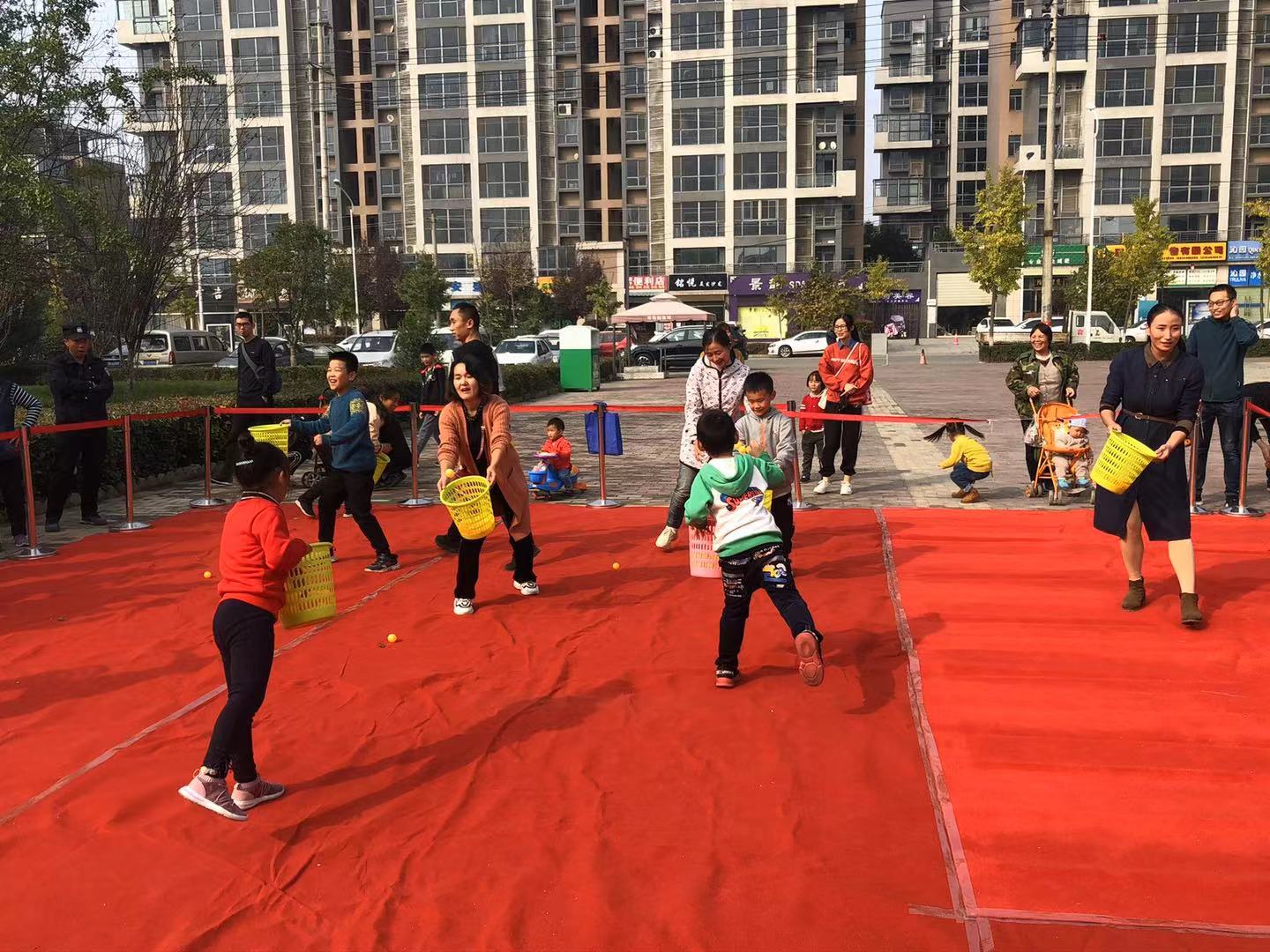 下午14:30,趣味運(yùn)動會正式開始,本次運(yùn)動會共設(shè)6個項(xiàng)目:神投手、抬轎子、搶凳子、氣球粘紙杯、摸石頭過河、拔河等比賽。運(yùn)動會當(dāng)天,200余名小區(qū)居民熱情高漲,摩拳擦掌,帶領(lǐng)著小朋友們積極參與。
