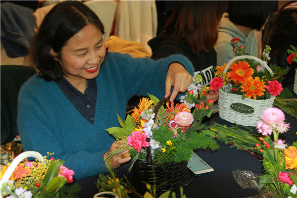 在老師的指導(dǎo)下,大家開始修剪枝葉、編綠葉、擺造型……一支支嬌艷欲滴的鮮花通過大家精妙的構(gòu)思搭配,不一會就變成一籃藍精美的花藝作品?;顒蝇F(xiàn)場花香四溢、滿室芬芳,大家與花相伴,歡聲笑語,度過了一個開心快樂的節(jié)日。