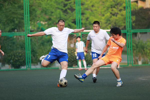 8月3日,冠軍爭(zhēng)奪戰(zhàn)在我隊(duì)與巖土公司足球隊(duì)之間展開(kāi)角逐。決賽的氣氛緊張而激烈,比賽一開(kāi)始,雙方的每個(gè)隊(duì)員都在全力拼搶,巖土公司抓住我隊(duì)配合上的失誤率先入球。我公司足球隊(duì)隊(duì)員頂住壓力,很快將比分扳回1比1平;隨后巖土公司又下一城,將比分改寫成2:1。面對(duì)落后的局面,我們的隊(duì)員沒(méi)有氣餒,更沒(méi)有放棄,以積極地拼搶和冷靜地傳遞應(yīng)對(duì),在兩度落后的情況下,兩度將比分扳平,比賽進(jìn)入白熱化。在我隊(duì)啦啦隊(duì)員震耳欲聾的吶喊加油聲中,我隊(duì)隊(duì)員各個(gè)如猛虎下山,掀起一波又一波進(jìn)攻狂潮,最終我隊(duì)以7:3的比分鎖定了勝局,贏得了本屆比賽的冠軍。