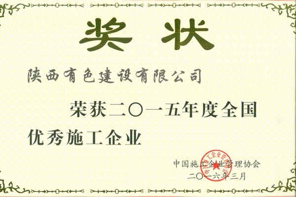 日前,中國施工企業(yè)管理協(xié)會授予公司“2015年度全國優(yōu)秀施工企業(yè)稱號”。