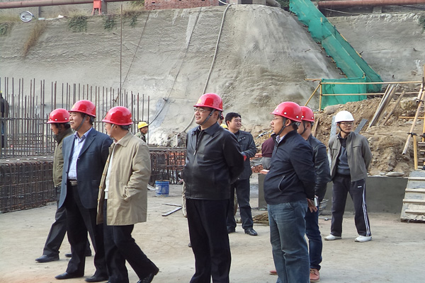 秦西社主席一行深入施工現場實地考察,詳細了解工程進展情況和現場運行狀況,隨后聽取了第一工程公司負責人袁建飛、項目經理呂紅輝就項目生產等方面的情況匯報。